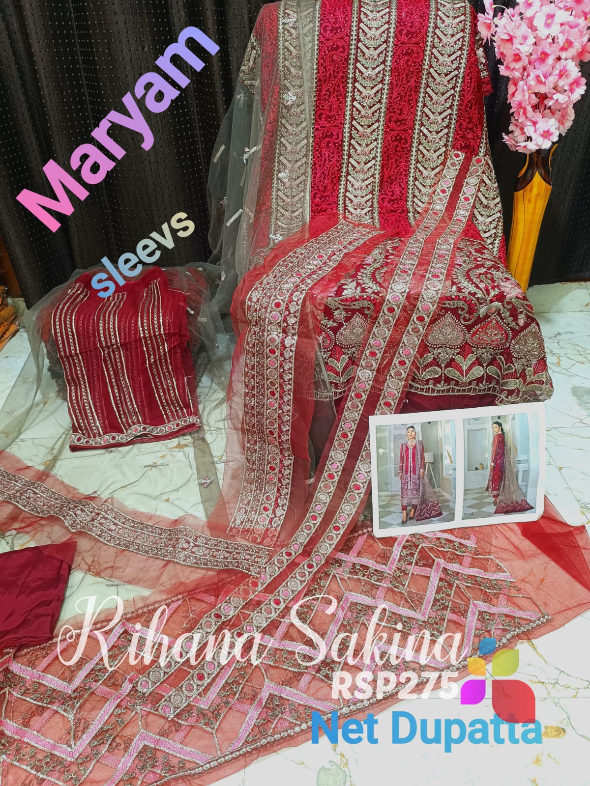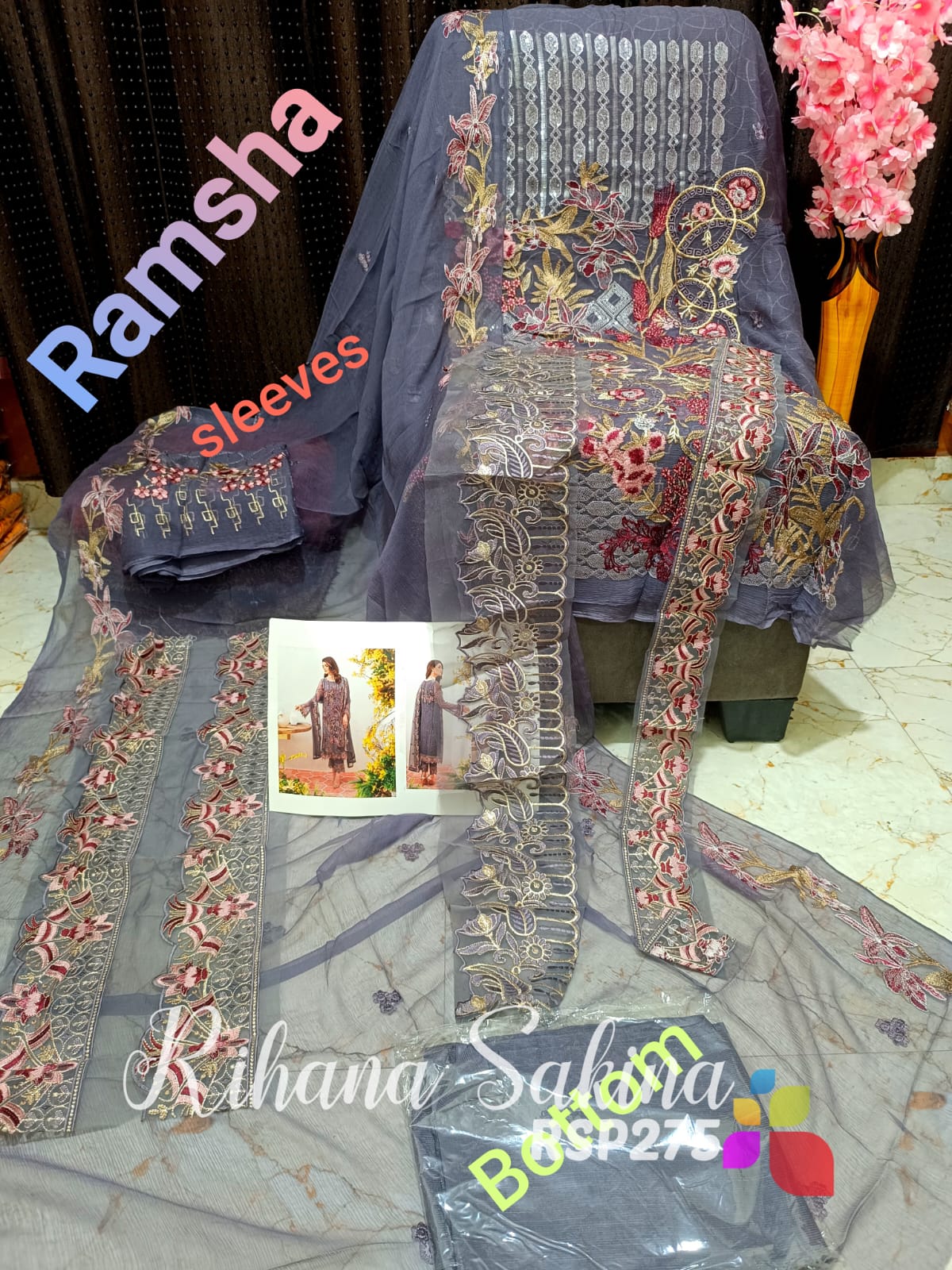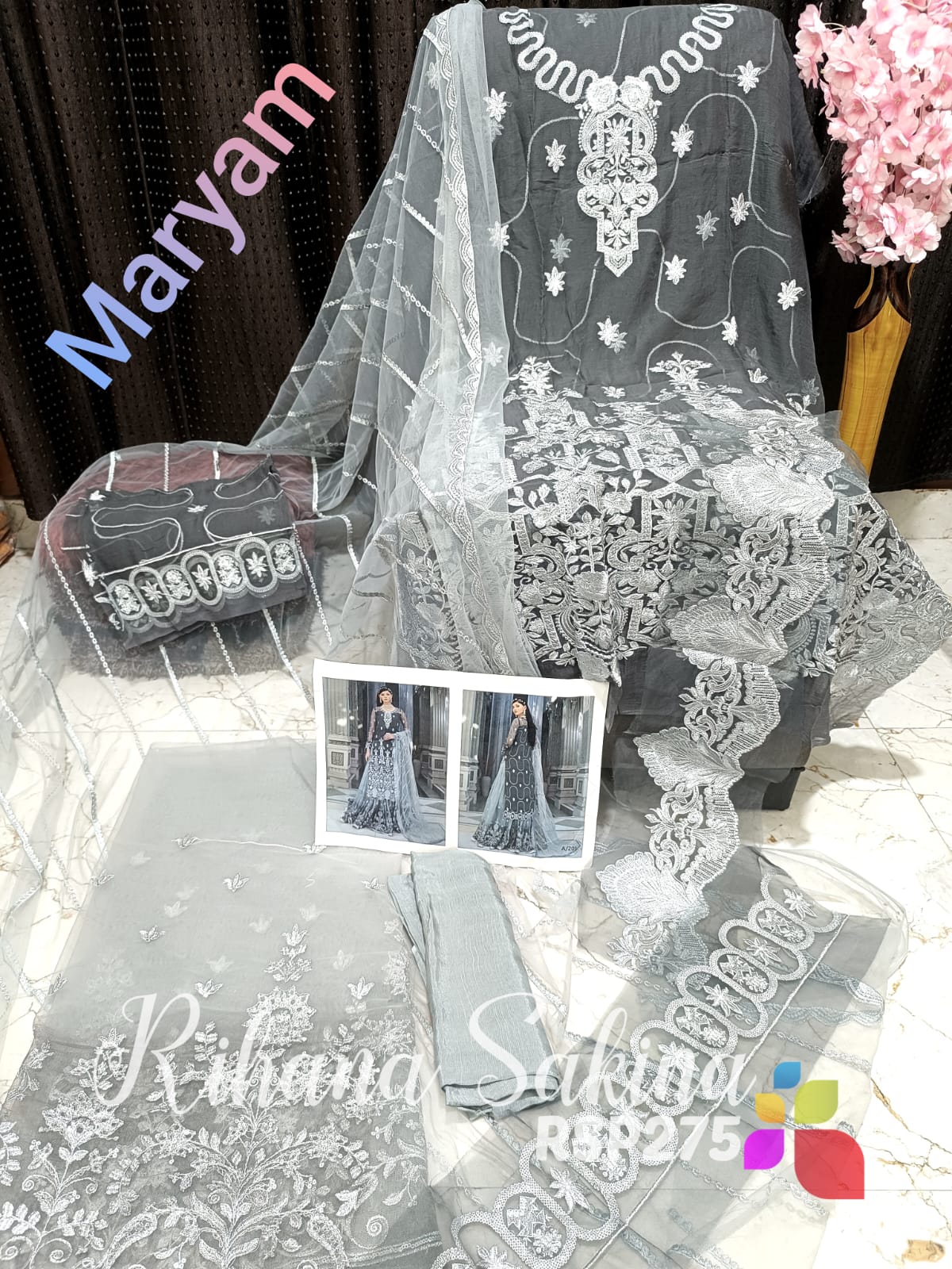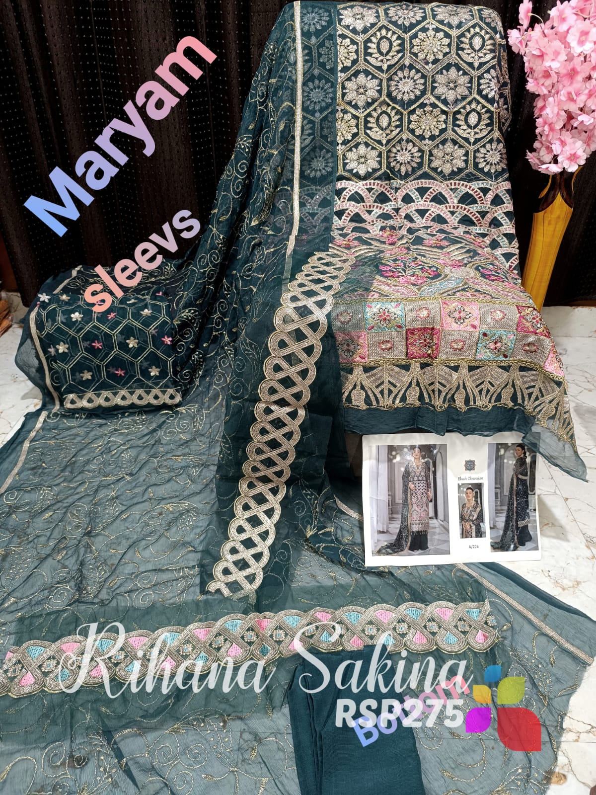 • SALE SALE SALE RSP275 All Pakistani heavy Catlogue on SALE Pakistani party wear MARYAM & RAMSHA Fabric detail ,? Shirt pure chiffon with heavy embroidery ? Dupatta chiffon and net heavy embroidery and patches ? Bottom raw silk fabric Detail as per code Limited piece Single Price Rs:3500 including shipping MSP 3000 free shipping