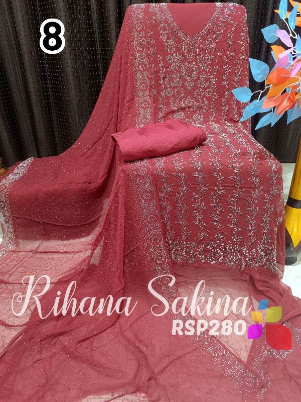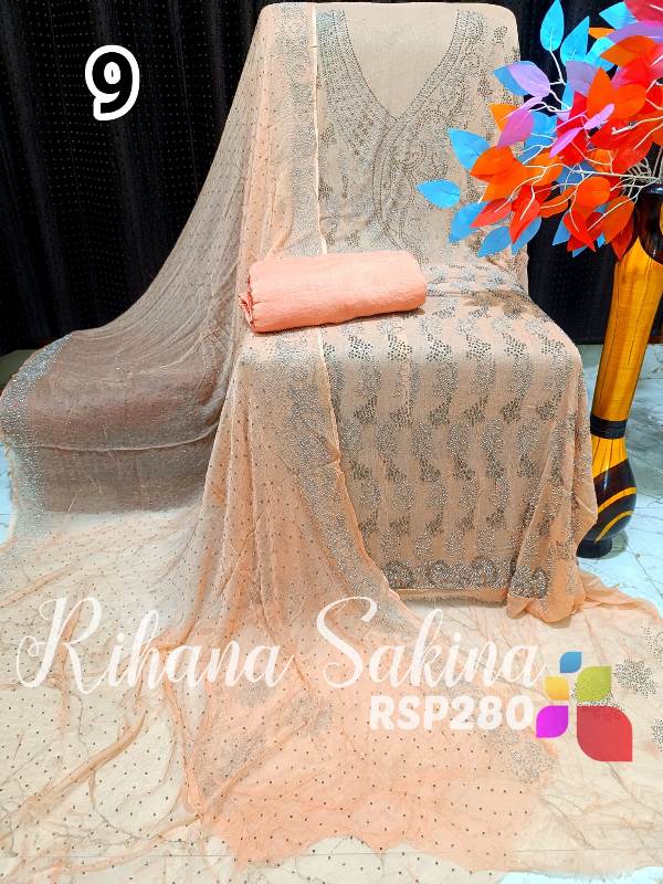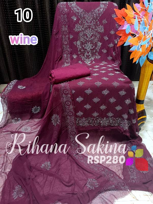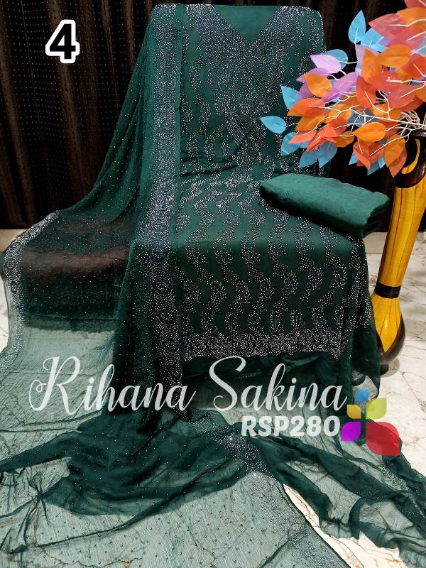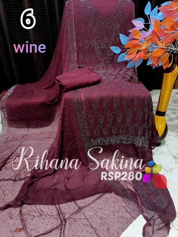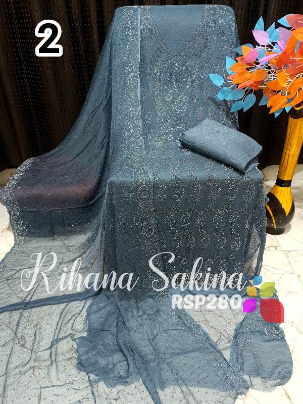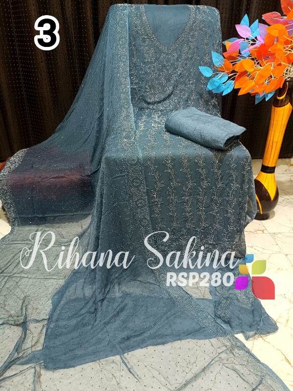 • RSP280 New Update Pakistani 3 piece full Suit Pure Chiffon heavy serowski work with bottom and inner Shirt dupatta & Bottom & inner also Description:- Shirt heavy Swarovski work on front side back side booti work fabric pure bamberg chiffon Dupatta pure chiffon Swarovski work with border Bottom shantoon2.5 meter Inner fabric Shantoon 2 meter Fabric detail:- Pakistani pure bemberg chiffon ?? Hurry up limited stock MSP ::—2000 free shipping MSP 1600 free shipping