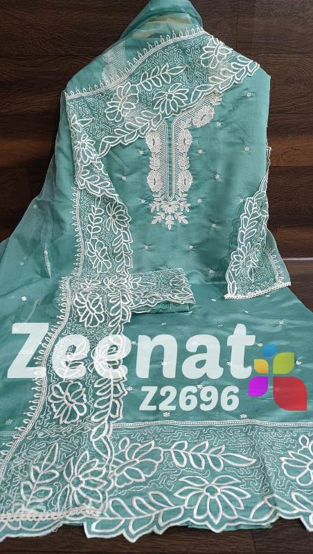 • NEW UPDATE Z2696 DESIGNER PC Details ? Shirt Modal maslin semi stich designer piece With all over beautiful embroidery n daman cut work ?Bust 56 ?Length 46 ?Bottom modal maslin embriodry fabric 2.5 M ? organza dupatta with beautifull embroidery cutwork border Rate :: 1300 including shipping