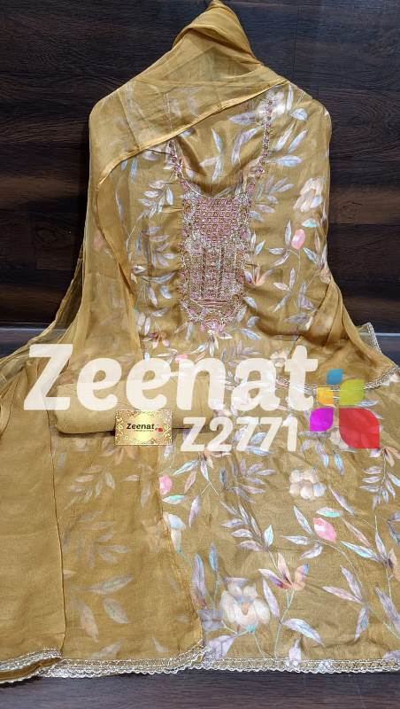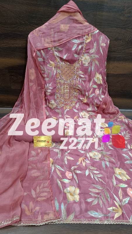 ? Shirt muslin designer semi-stitched with beautiful digital print neck embroidery ..bust 58, Length 46