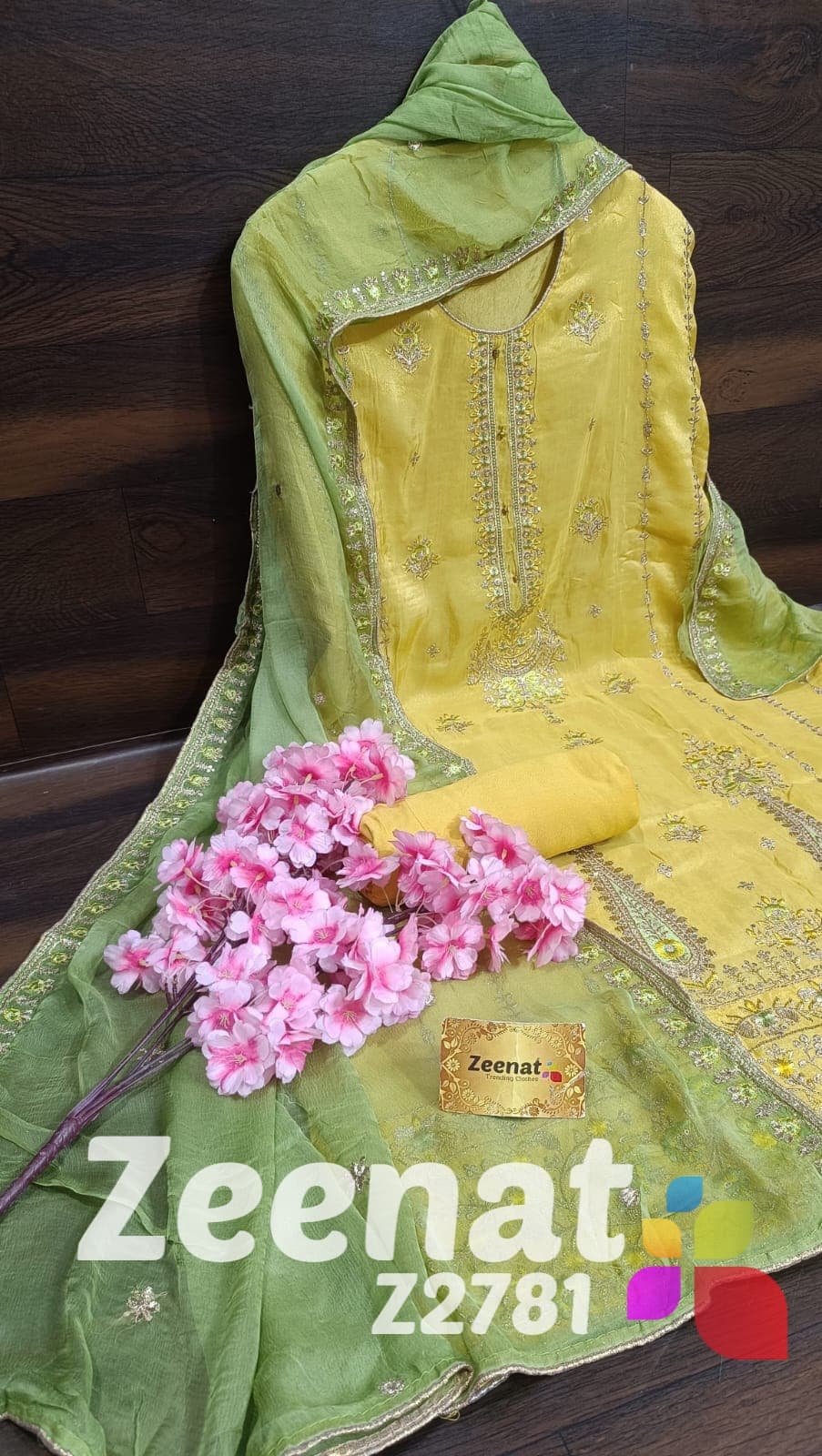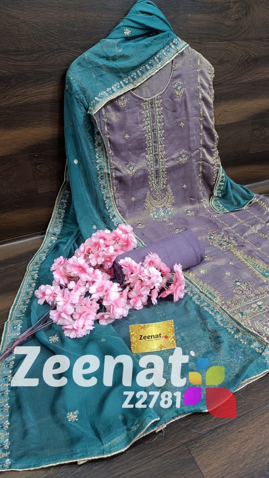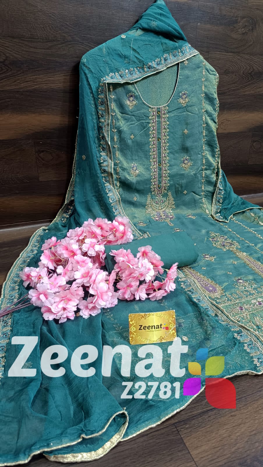 ? Dupatta pure chiffon with contrast color beautiful embroidery n cutwork border....2.25 mtr approx