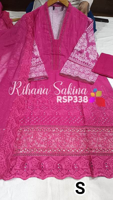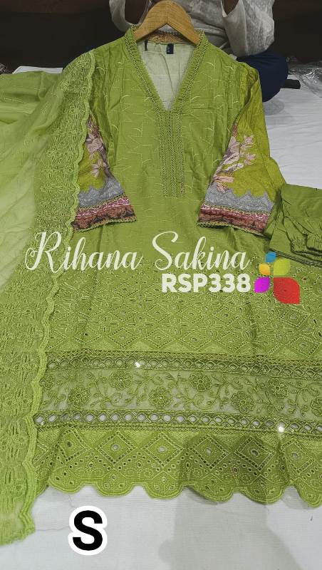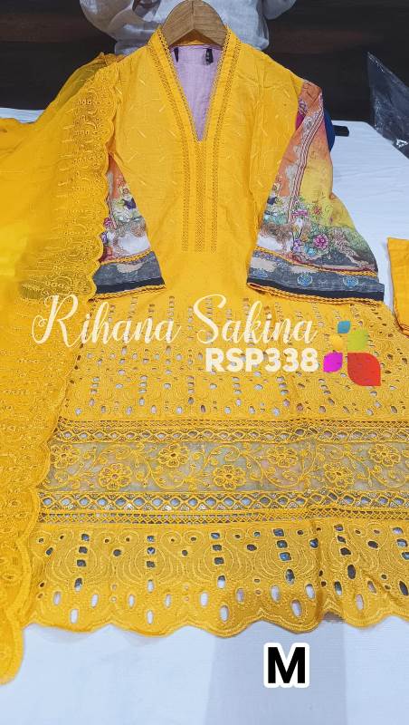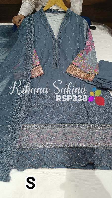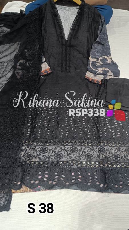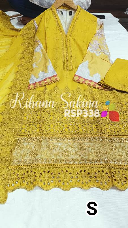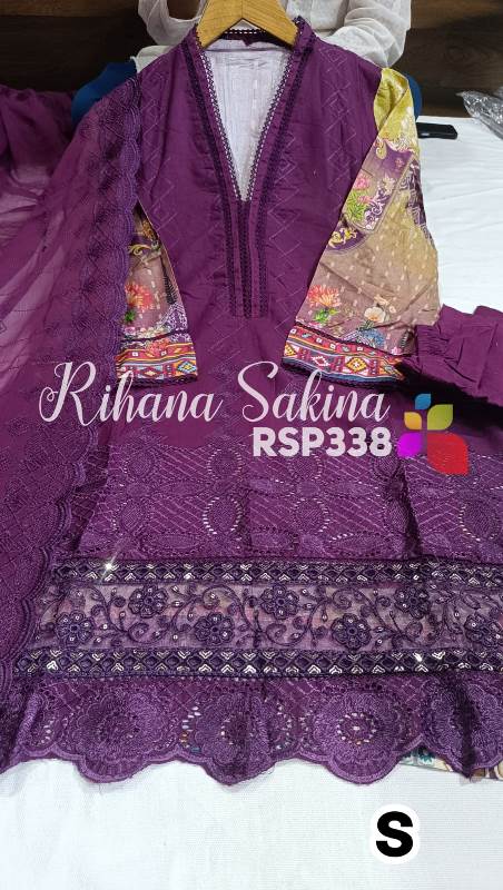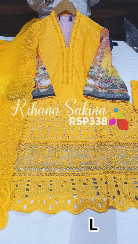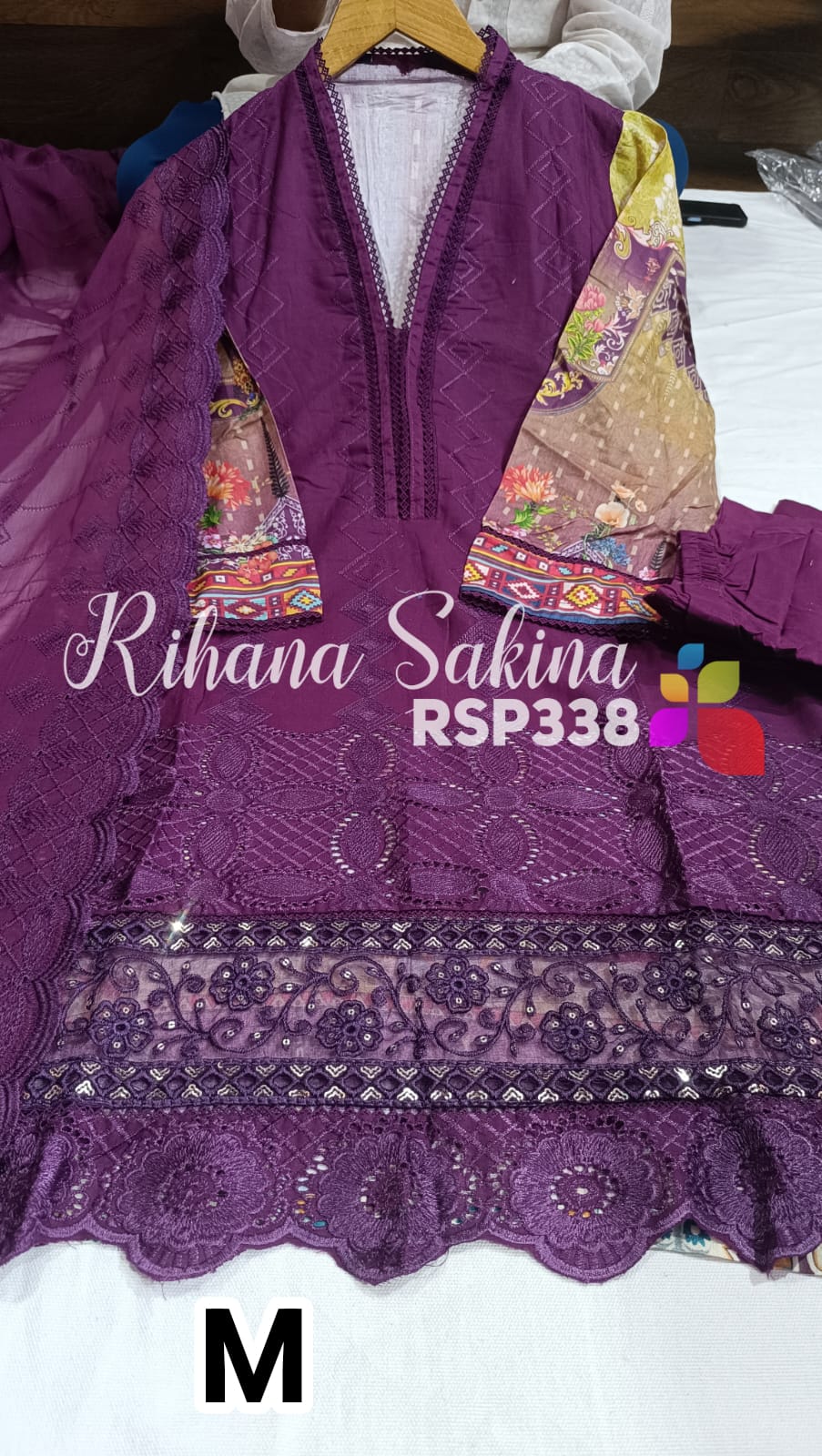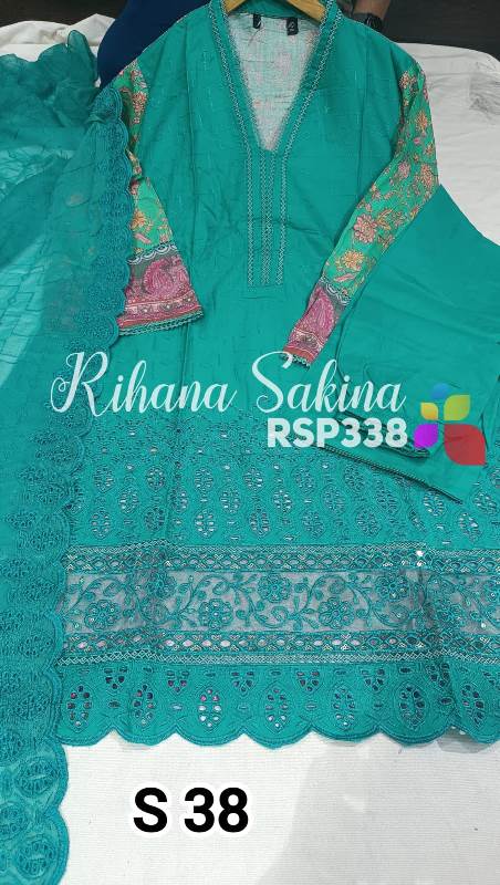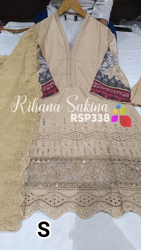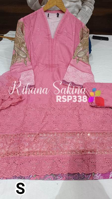 Shirt lawn front embroidery cutwork boring daman back digital printed neck n sleeves lace