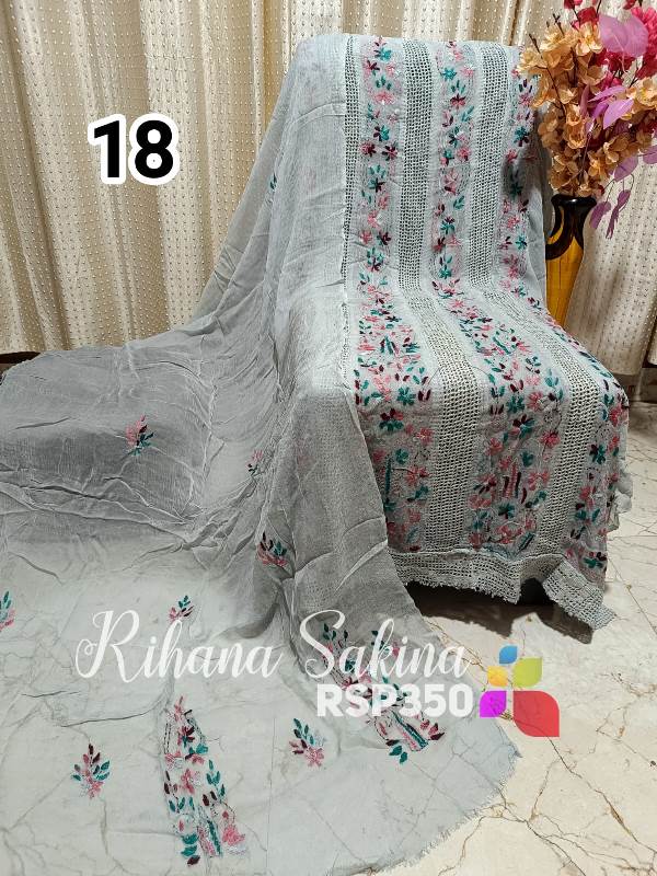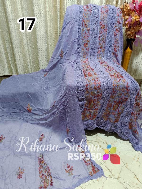 • RSP229 ?? New Update ?? karachi Kureshiya 2 piece unstich chiffon shirt dupatta with Handmade embroidery Description:- Handmade embroidered unstich shirt free size(50) Length approx 46 Fabric detail:- chiffon with kureshiya embroidery Rate=1600 free shipping