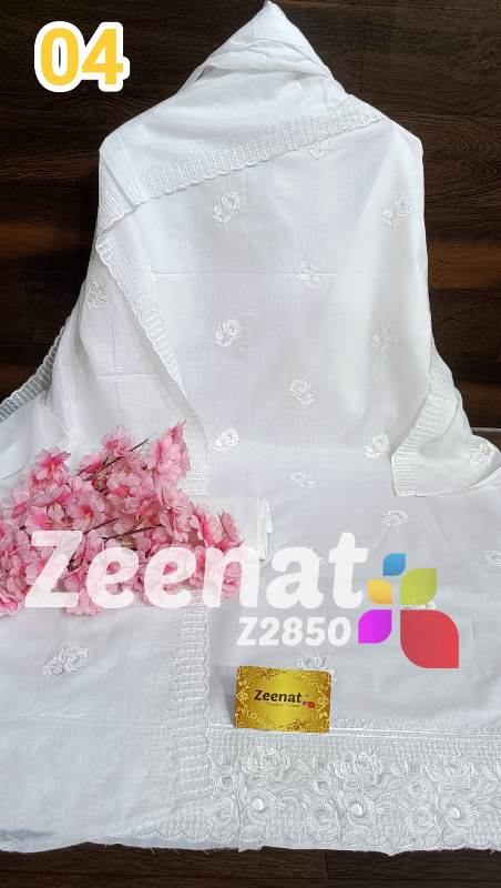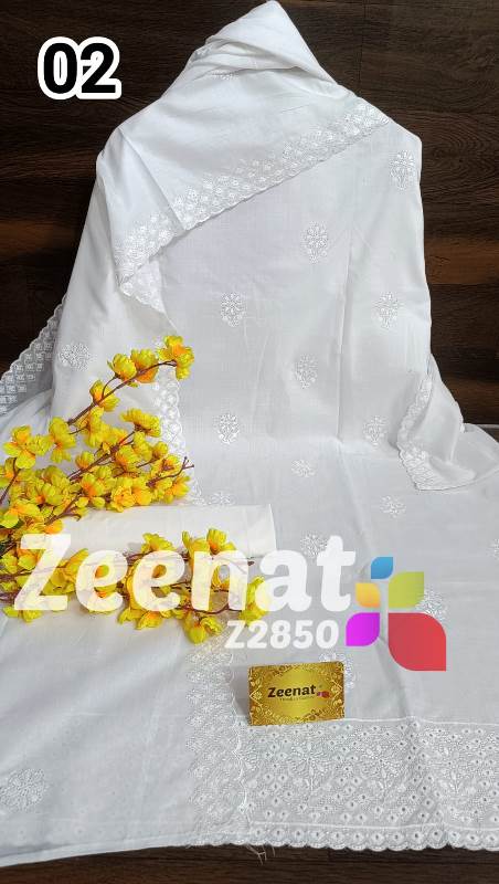 • NEW UPDATE Z2850 DESIGNER PC ? Top cotton unstitched with beautiful all over chikan embroidery n cutwork danam..length 48...bust 60 approx ? Bottom cotton fabric....2.5mtr approx ? Dupatta cotton with beautiful embroidery n cutwork border....2.25 mtr approx Very Very beautiful n exclusive design from ZEENAT ? ? Super quality ? ? 1099 including shipping