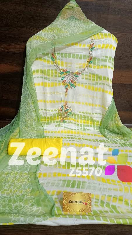 • SUMMER SALE Z5570 ?? NEW DESIGN?? DESIGNER PC Cotton Collection on Sale Details ?Shirt pure Cotton printed designer piece With embroidery n print ?Bust 52 ?Length 46 ?Bottom Cotton 2.5 M ? Cotton and dupatta Rate::1050 including shipping Rate :: 850 including shipping