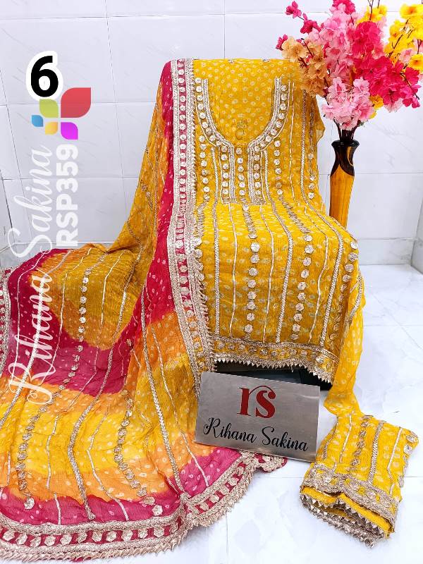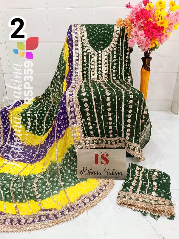 • RSP359 New STOCK?? Pakistani jorjet handwork heavy LCD gota embroidery 2 piece Suit Fabric detail Jorjet fabric only shirt and Dupatta Sleeves fabric also heavy embroidery by gota work Length 42+ Bust 60 Fabric detail Viscose jorjet LCD heavy gota work Special quality n genuine rate buy from Rihana Sakina dealers ?RIHANA SAKINA exclusive ? MSP 2700 free shipping