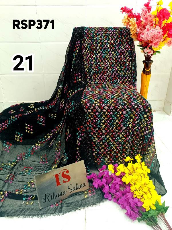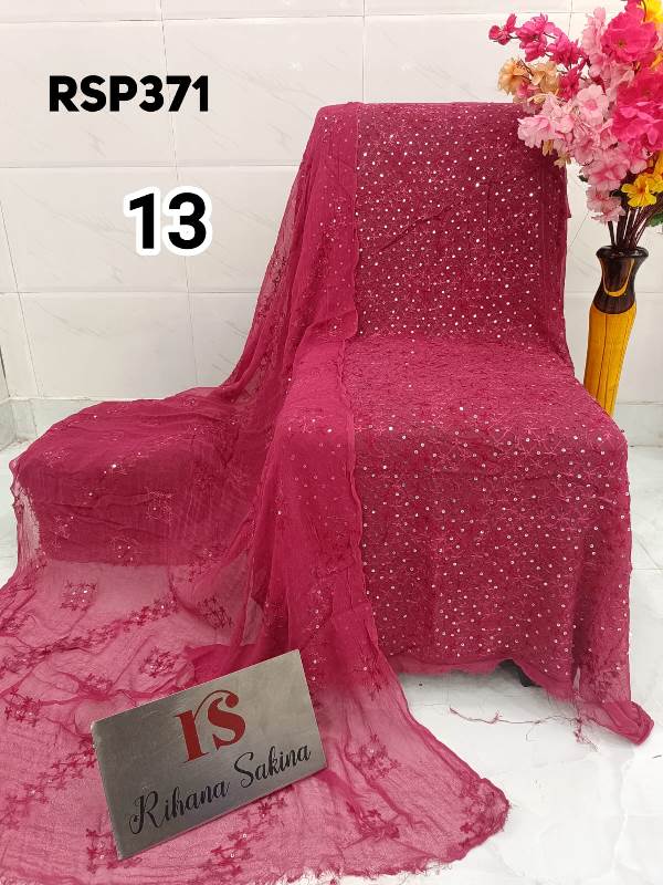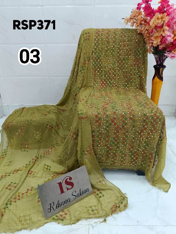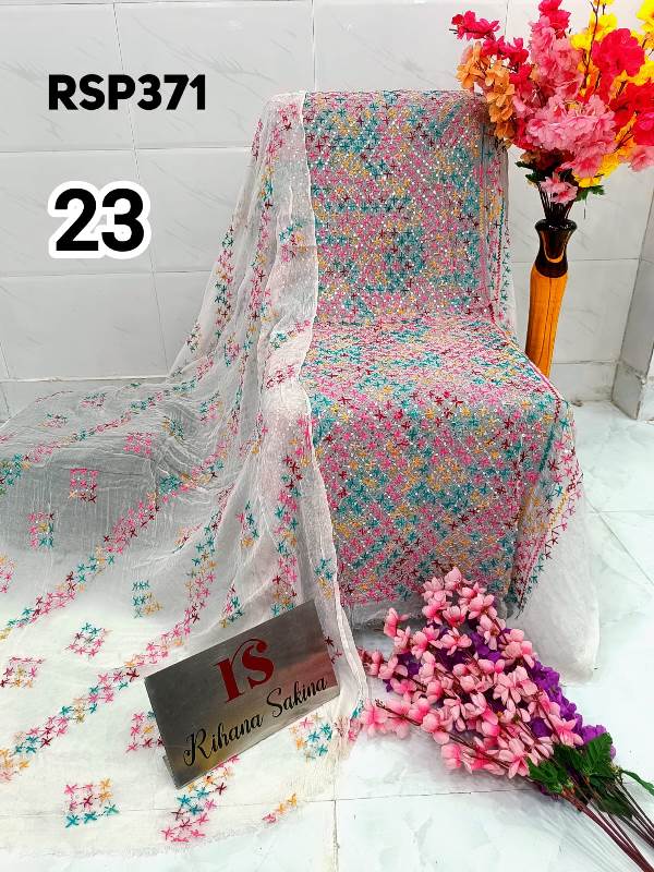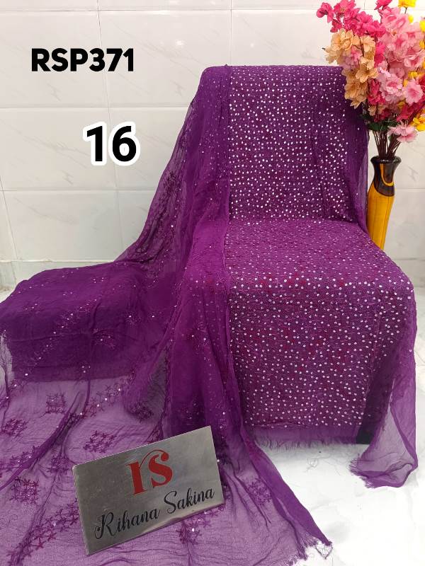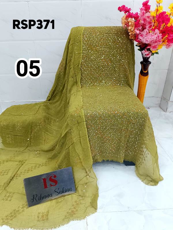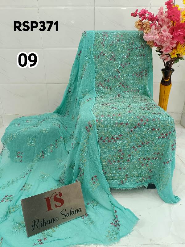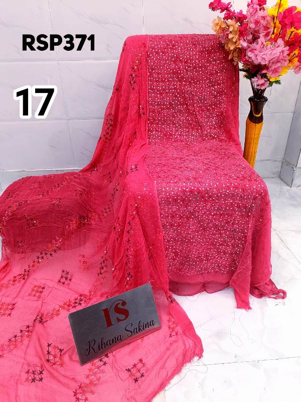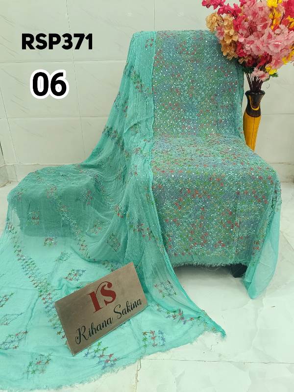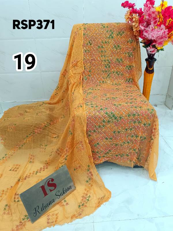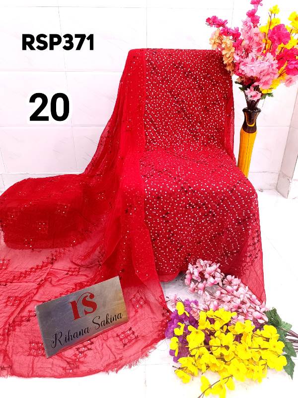 • RSP371 RESTOCK Again? Benazeer chawal Sitara heavy embroidery Handmade suits Shirt dupatta only Description:- Shirt embroidered by all handmade. Lenth 46-48 Bust 60 Dupatta heavy embroidered full jaal. A class famous work. Very good quality. Fabric detail:- pakistani jorjet Note:: embroidery color may be vary Price ::—1350 free shipping
