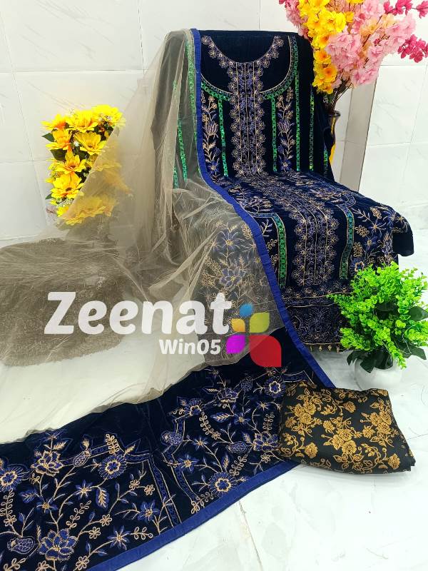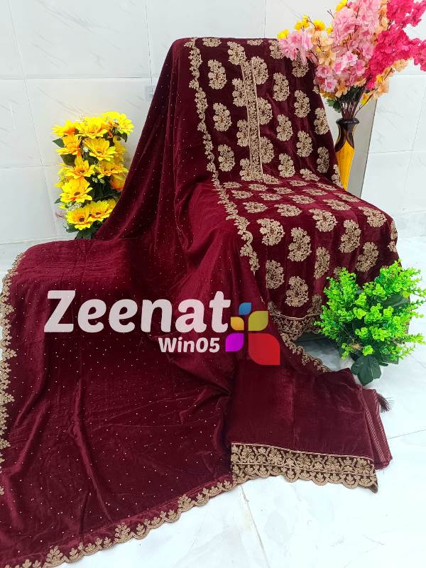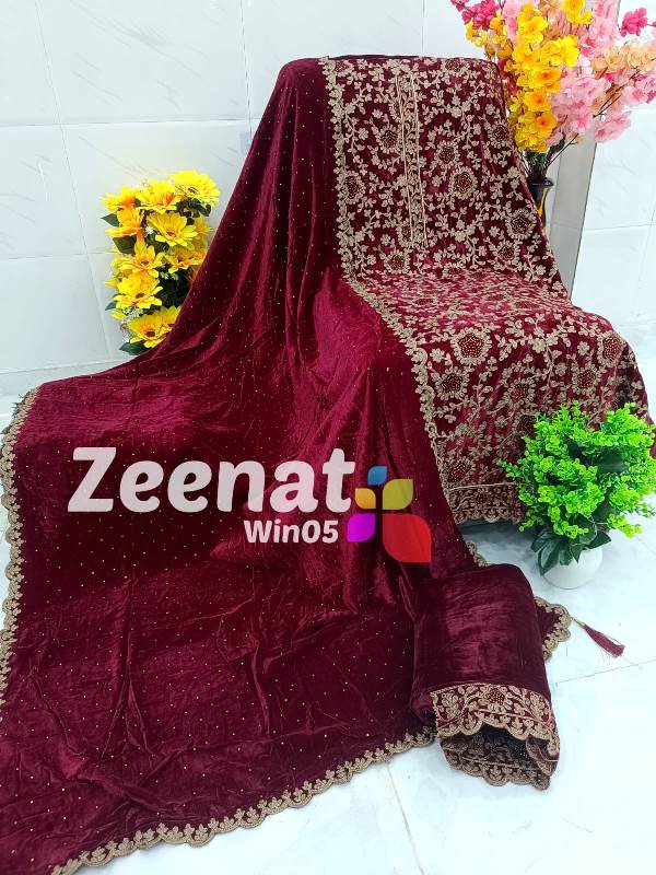 • SALE ? SALE ? Hit Item on SALE???????????? Win05 DESIGNER PC ? Top micro velvet unstitched with beautiful embroidery resham n Swarovski all over work n ...Bust 60 Length 46 latkan n button etc. ? Bottom velvet with embriodry work.....2.5 mtr approx ? Dupatta velvet with beautiful Swarovski n resham embriodry 4 side border .2.25 mtr approx Very Very beautiful n exclusive design from Zeenat ? ? Quality Zeenat Assured ? ? Msp 2600 including shipping MSP 2400 including shipping
