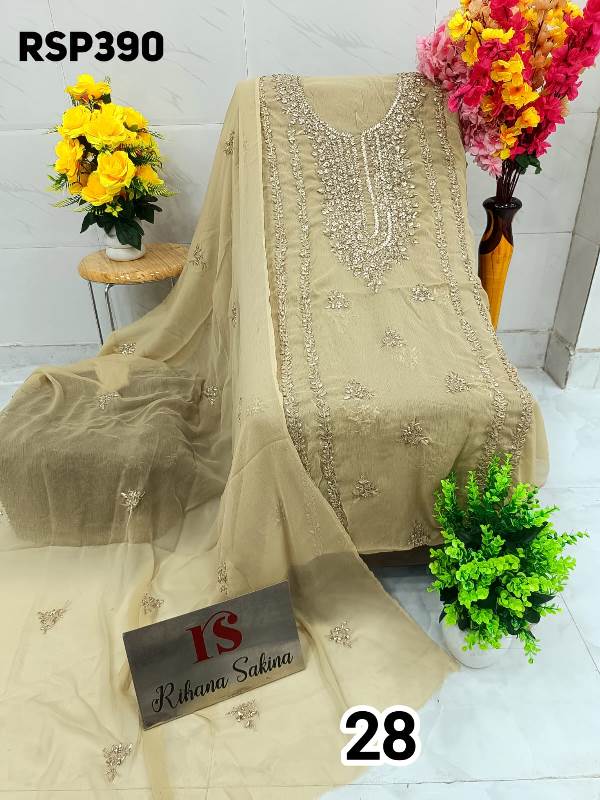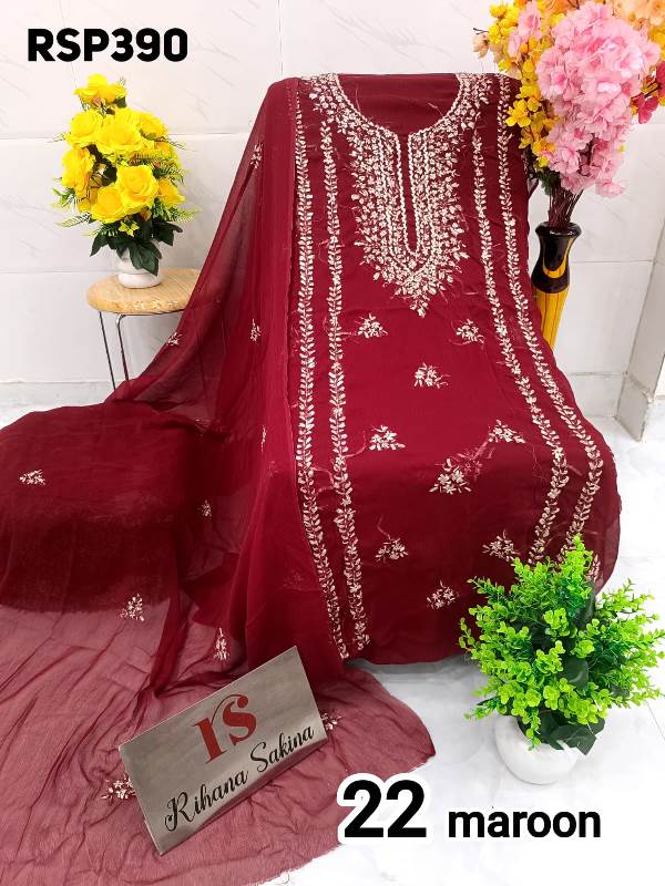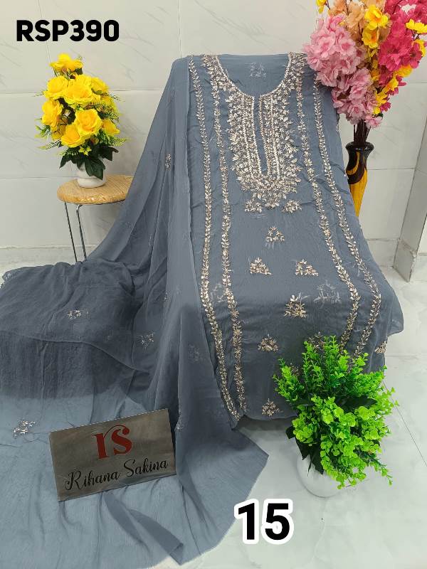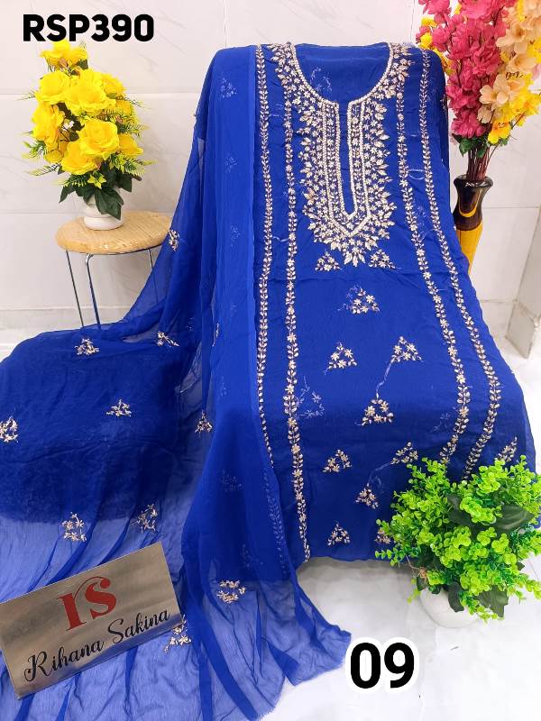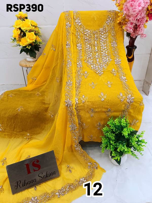 • *RESTOCK AGAIN*??? *hit item*??? *RSP390* *Beautiful ORIGINAL HEAVY BARIK GOTA EMBROIDERY Handwork Suit* ? Top soft Chiffon unstitched with beautiful n heavy Barik embroidery handwork all over...... Length - 42"..... Bust - 50" Approx ? Dupatta soft Chiffon with Barik embroidered work booti n 2 side border....2.25 approx. ? *Only shirt dupatta*??? *Quality Rihana Sakina Assured?* *?1300 free shiping*