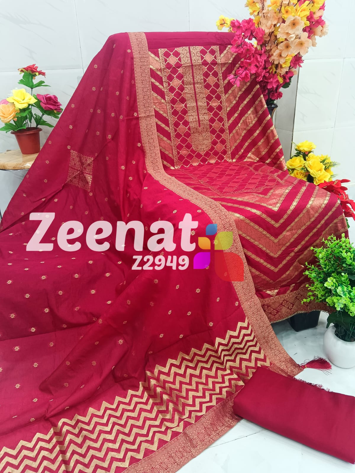 ? Dupatta pure dola silk with beautiful banarsi viewing n border....2.25 mtr approx