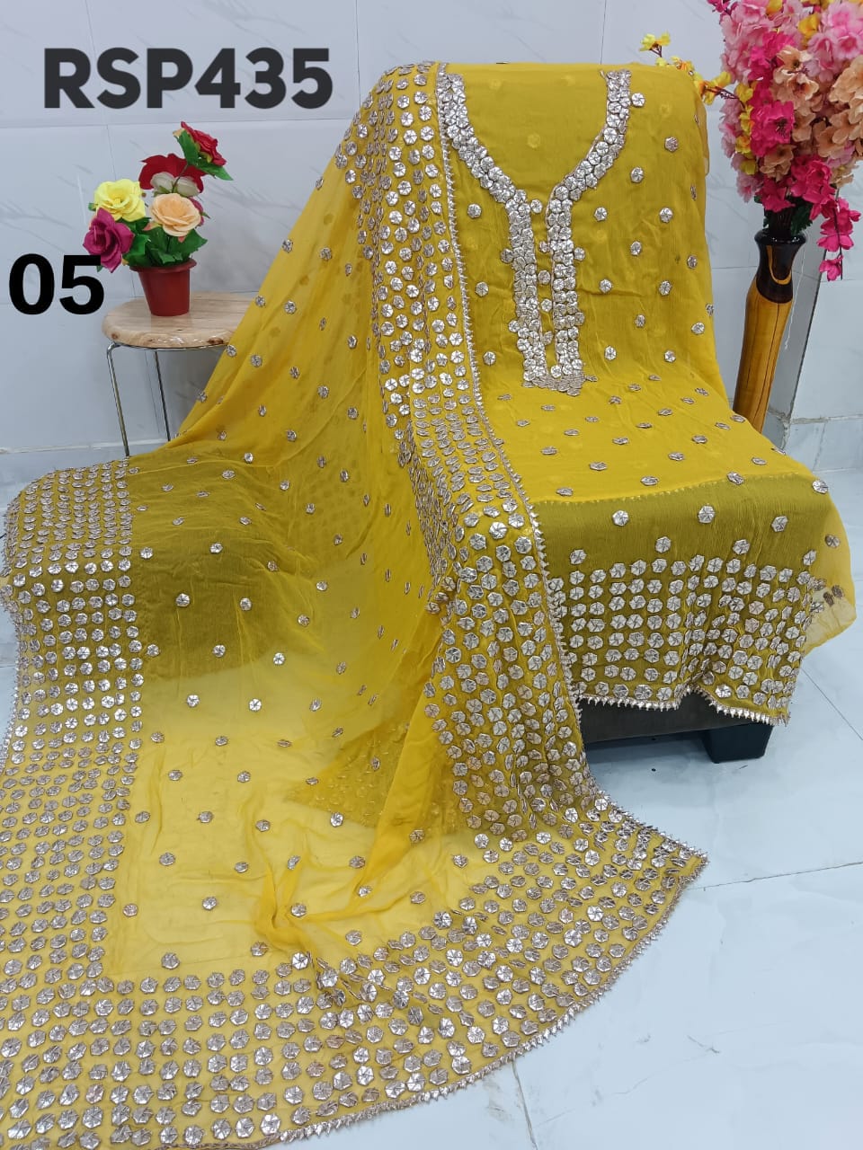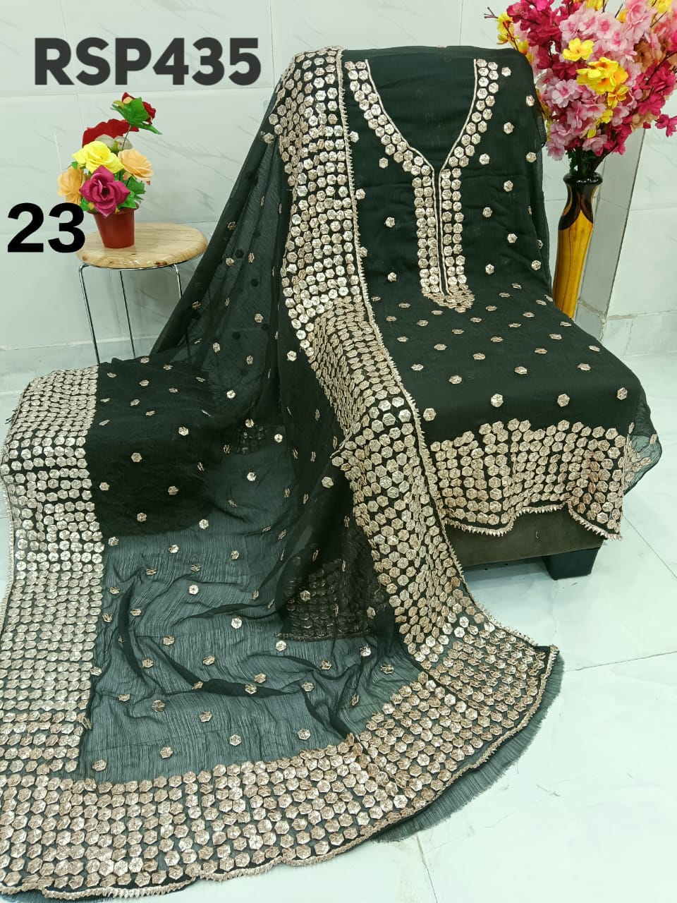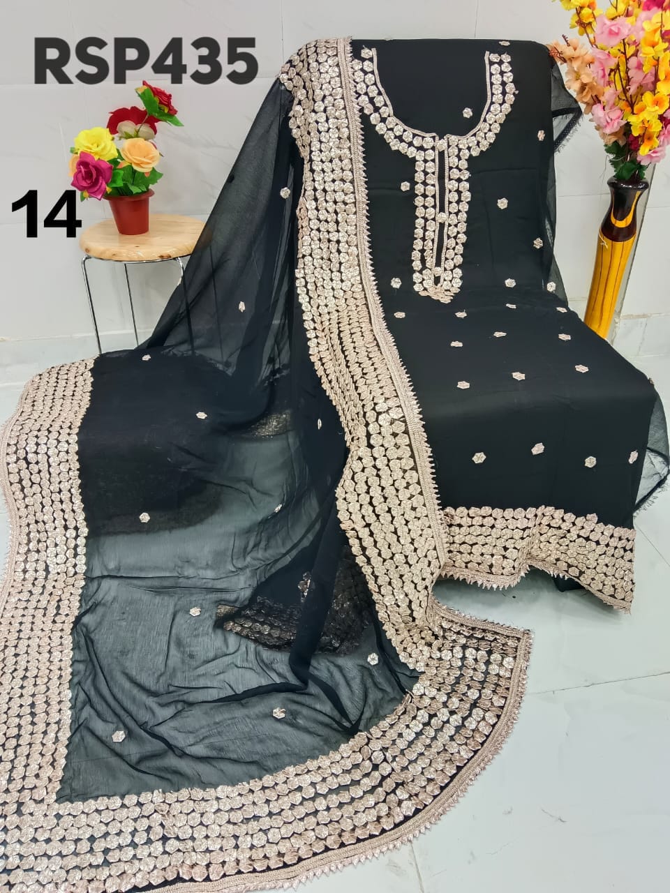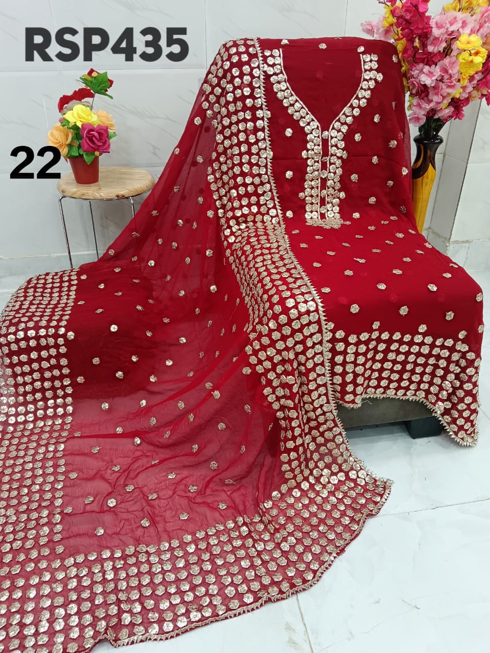 • RSP435 Hit item New STOCK?? Pakistani Bemberg Chiffon handwork heavy LCD gota embroidery 2 piece Suit Fabric detail Bemberg Chiffon fabric only shirt and Dupatta Sleeves fabric also heavy embroidery by gota work Length 40-42 Bust 50 Fabric detail Bemberg chiffon LCD heavy gota work Special quality n genuine rate buy from Rihana Sakina dealers Fast book because No multiple available????????????????????????? MSP 2700 free shipping
