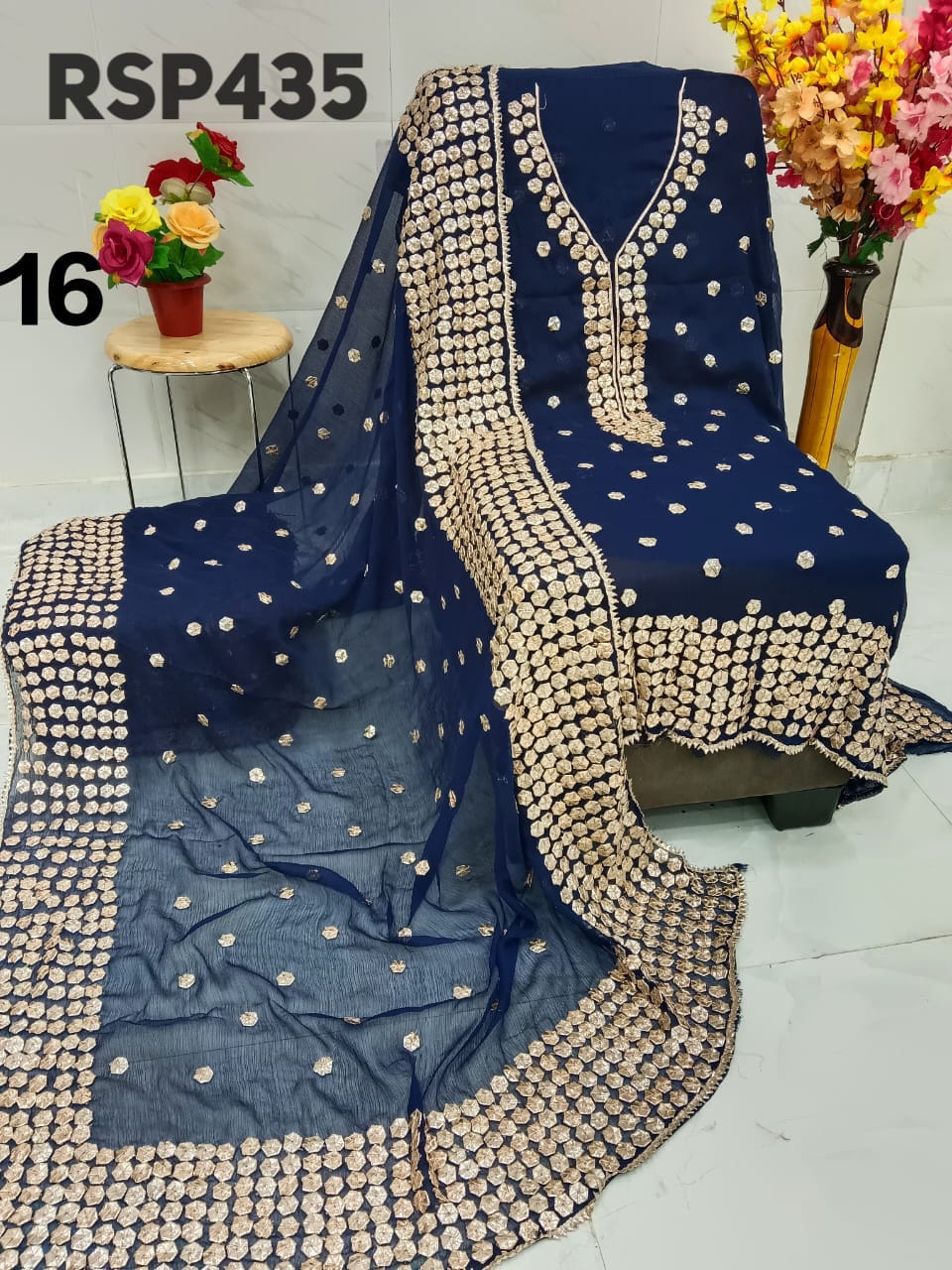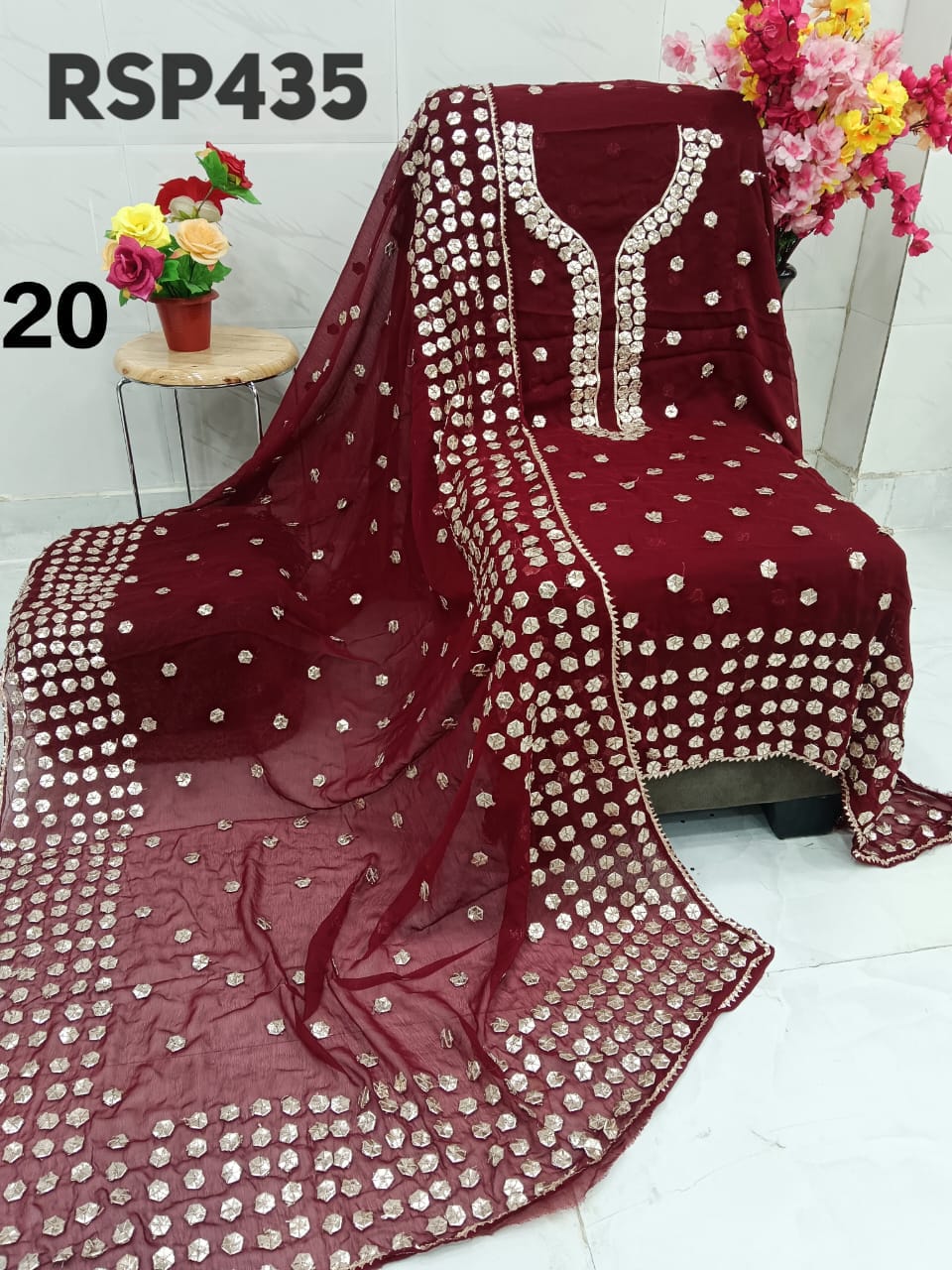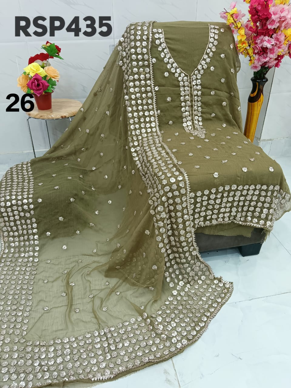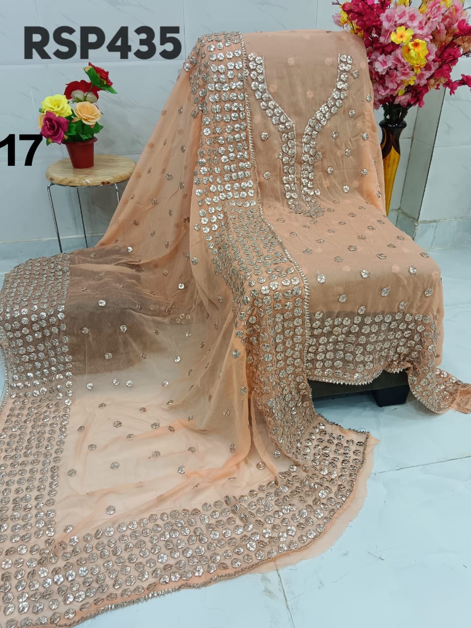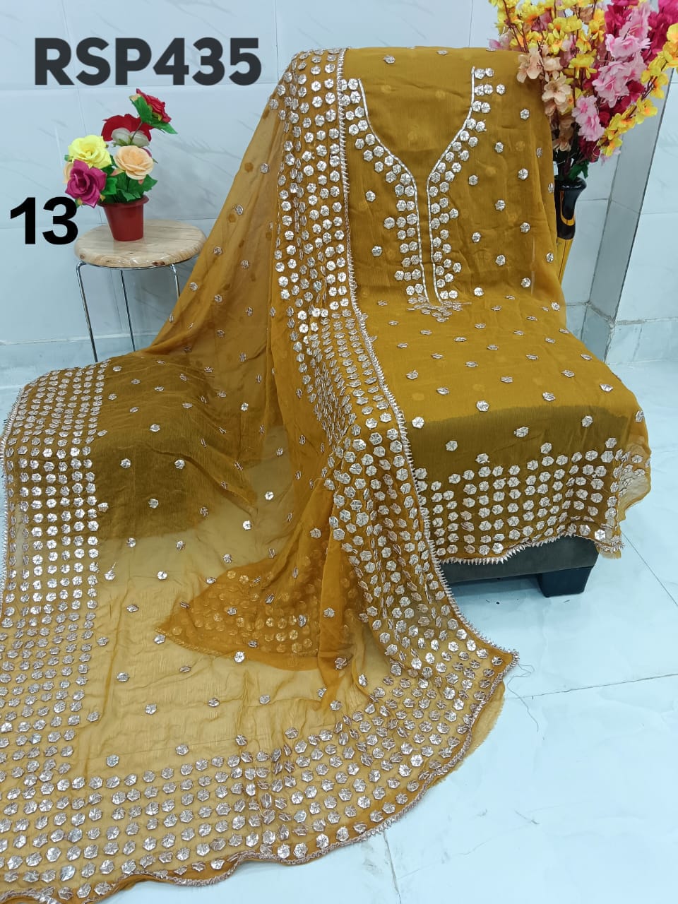 • RSP435 Hit item New STOCK?? Pakistani Bemberg Chiffon handwork heavy LCD gota embroidery 2 piece Suit Fabric detail Bemberg Chiffon fabric only shirt and Dupatta Sleeves fabric also heavy embroidery by gota work Length 40-42 Bust 50 Fabric detail Bemberg chiffon LCD heavy gota work Special quality n genuine rate buy from Rihana Sakina dealers Fast book because No multiple available????????????????????????? MSP 2700 free shipping