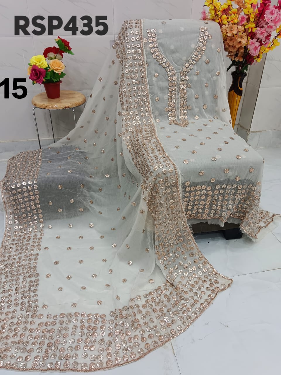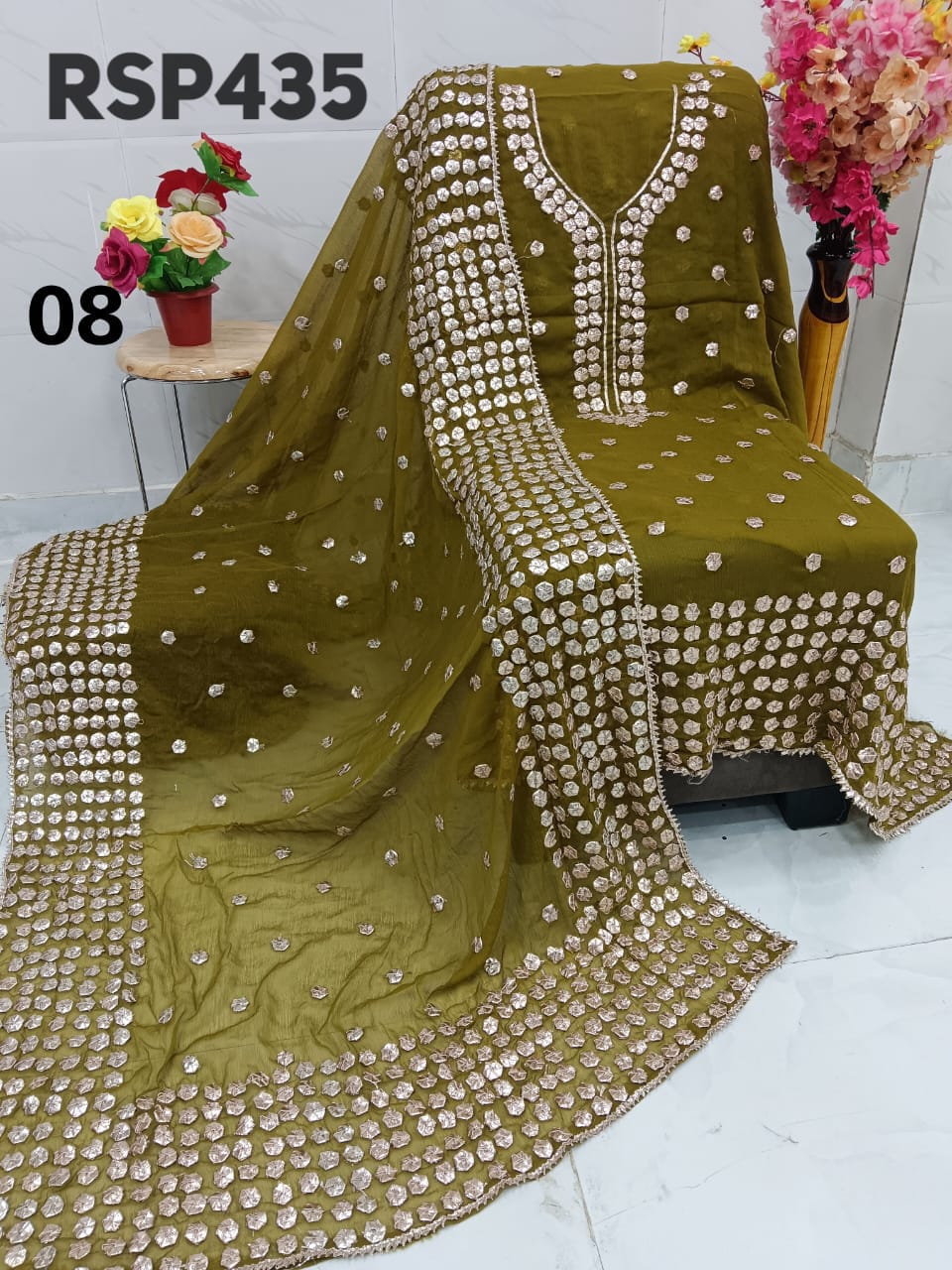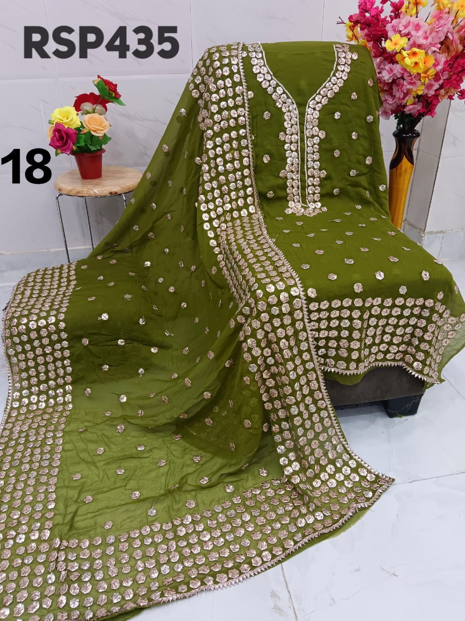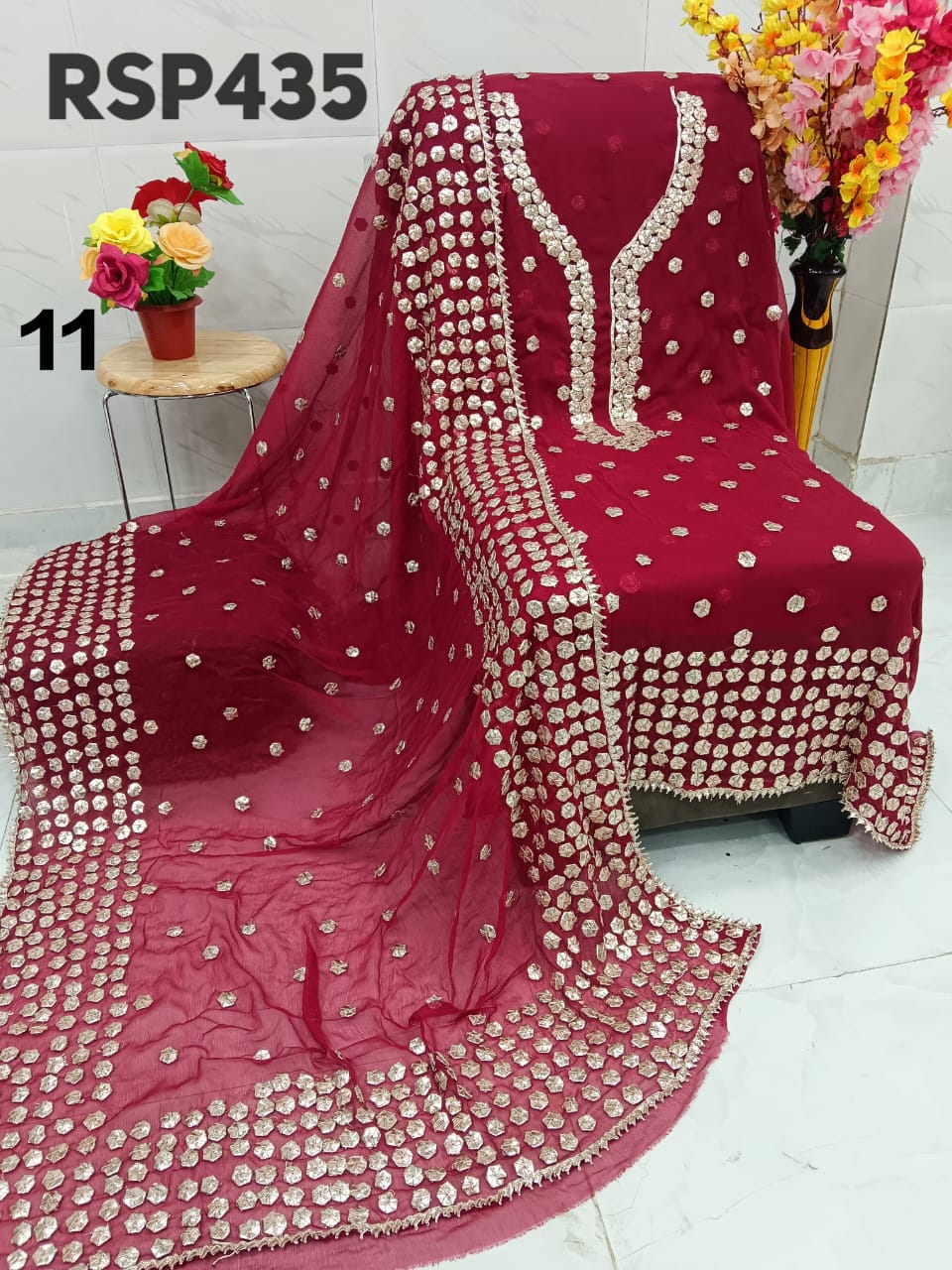 • RSP435 Hit item New STOCK?? Pakistani Bemberg Chiffon handwork heavy LCD gota embroidery 2 piece Suit Fabric detail Bemberg Chiffon fabric only shirt and Dupatta Sleeves fabric also heavy embroidery by gota work Length 40-42 Bust 50 Fabric detail Bemberg chiffon LCD heavy gota work Special quality n genuine rate buy from Rihana Sakina dealers Fast book because No multiple available????????????????????????? MSP 2700 free shipping