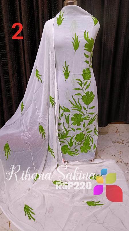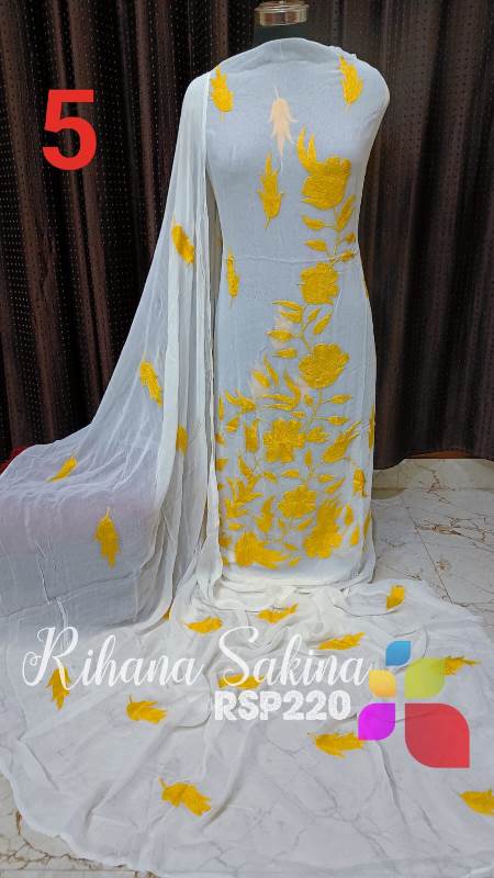 • RSP220 New Update Benazeer R patta heavy embroidery Handmade suits Shirt dupatta only Description:- Shirt embroidered by all handmade. Lenth 46 Bust 60 Dupatta embroidered booti. A class famous work. Very good quality. Fabric detail:- pakistani jorjet Price ::—1300 free shippingIM