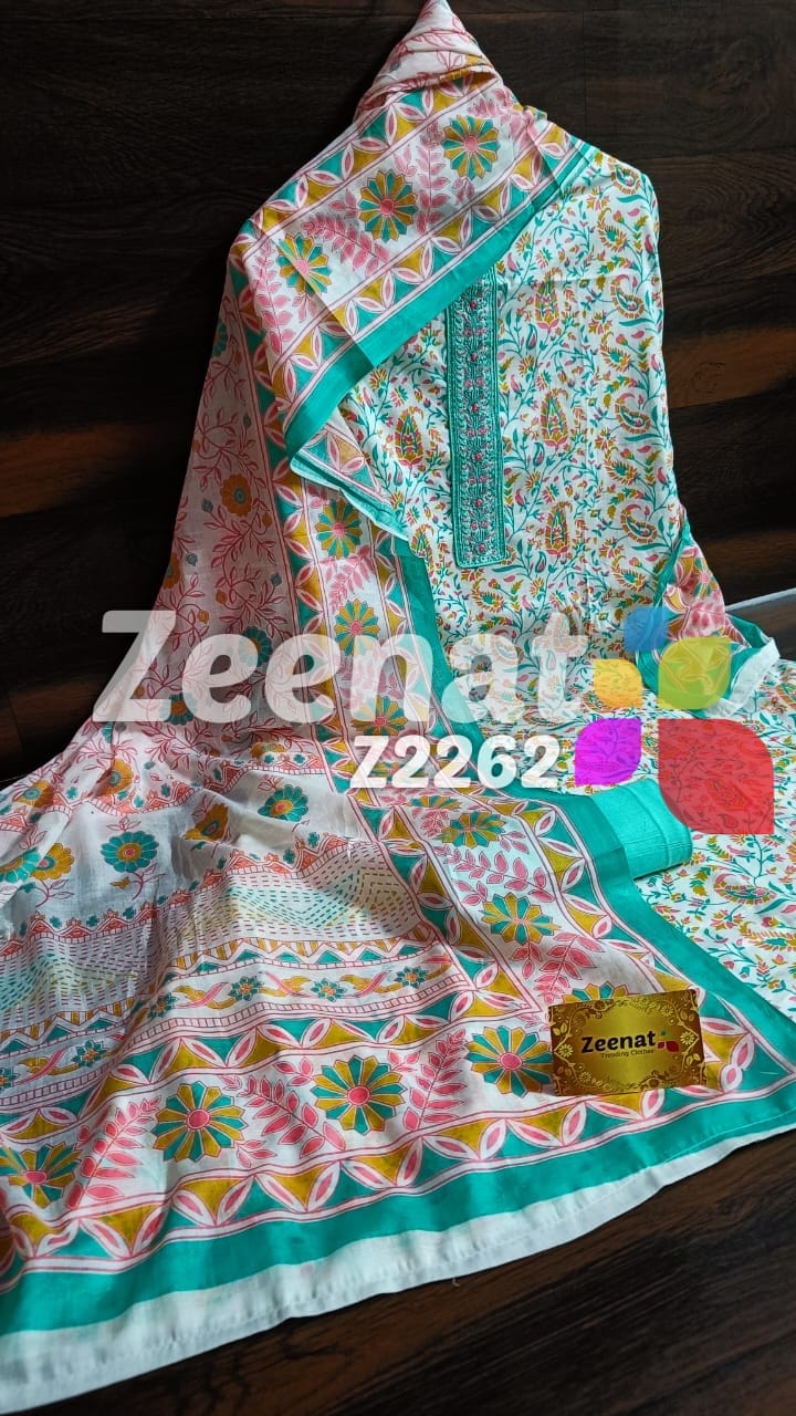 • SALE SALE SALE???? Z5500 ?? Cotton Maslin Sale?? DESIGNER PC Cotton and maslin Collection on Sale Details ?Shirt pure Cotton printed and embroidery designer piece With cotton printed work ?Bust 50 ?Length 46 ?Bottom Cotton 2.5 M ? chiffon plan and printed and embroidery dupatta 1550 Rate :: 1150 free shipping